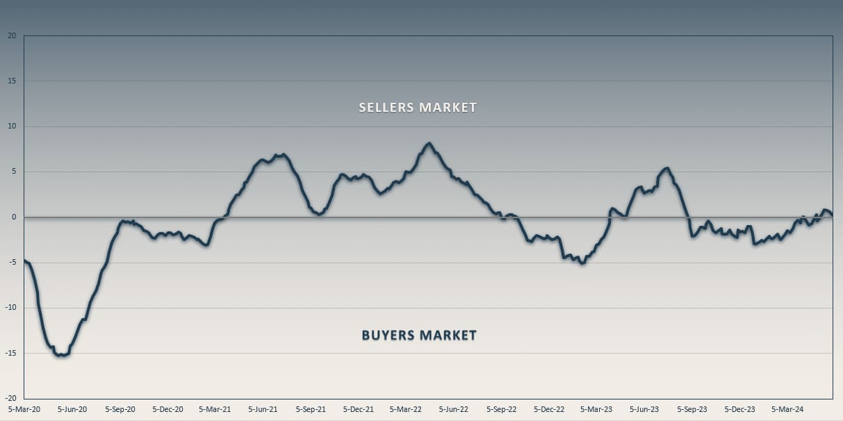The Brooklyn Market pulse has been hovering on the sellers' side of the neutral zone all month.