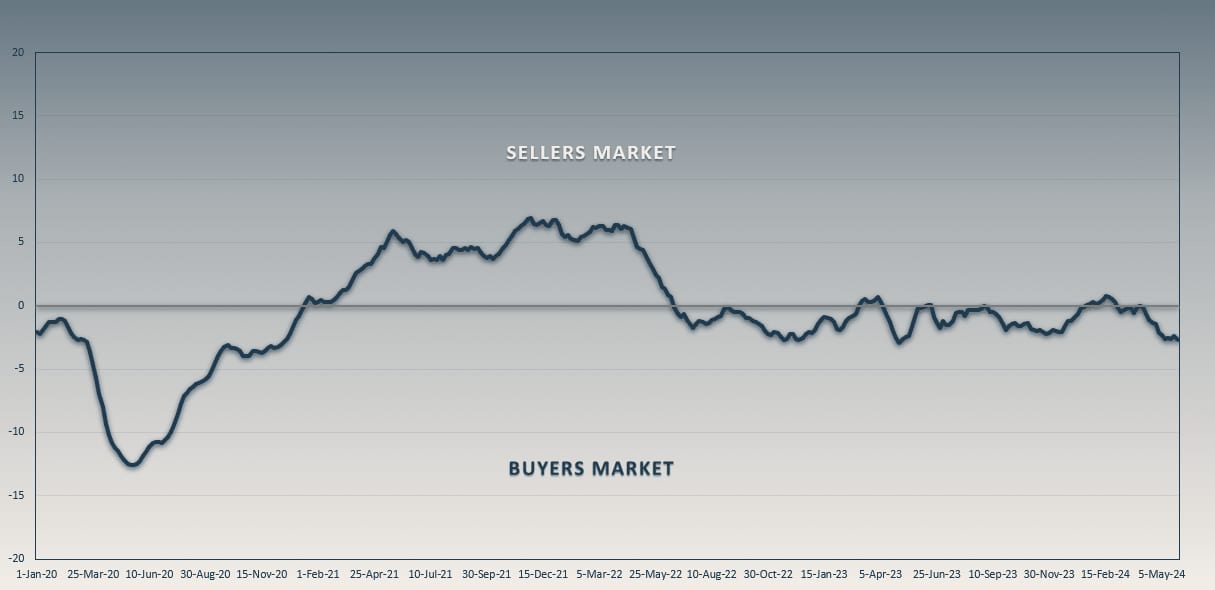The Market remains in the neutral zone, however, rather than continuing last month's trend toward favoring sellers, we have seen a small reversal back towards buyers.